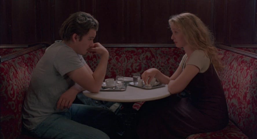 The chemistry between Julie Delpy and Ethan Hawke is palpable, unlike any rom-com I've seen, to be honest. Upon rewatching, I can't help but notice how natural they are with one another. It's rare to see that in films nowadays, when so many actors barely seem to vibe with one another. I also love how dialogue-driven Before Sunrise is. Perhaps this is a product of the time, set in the 90s, they didn't have their phones to distract them or to use as a buffer. Their introduction to one another is through revealing the covers of their books, which was endearing. They spend their entire time together talking about past relationships, grief, their passions, and religion. There was no small talk, they delved deep into the essence of themselves.