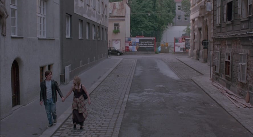 In Before Sunrise, Celine and Jesse meet on a train, where they engage in a deep conversation all the way to Jesse's stop. Before getting off the train, he convinces her to spend the day with him in Vienna until his flight at 9:30 a.m. the next morning. They spend their time together exploring parts of Vienna as they slowly fall in love with each passing minute.