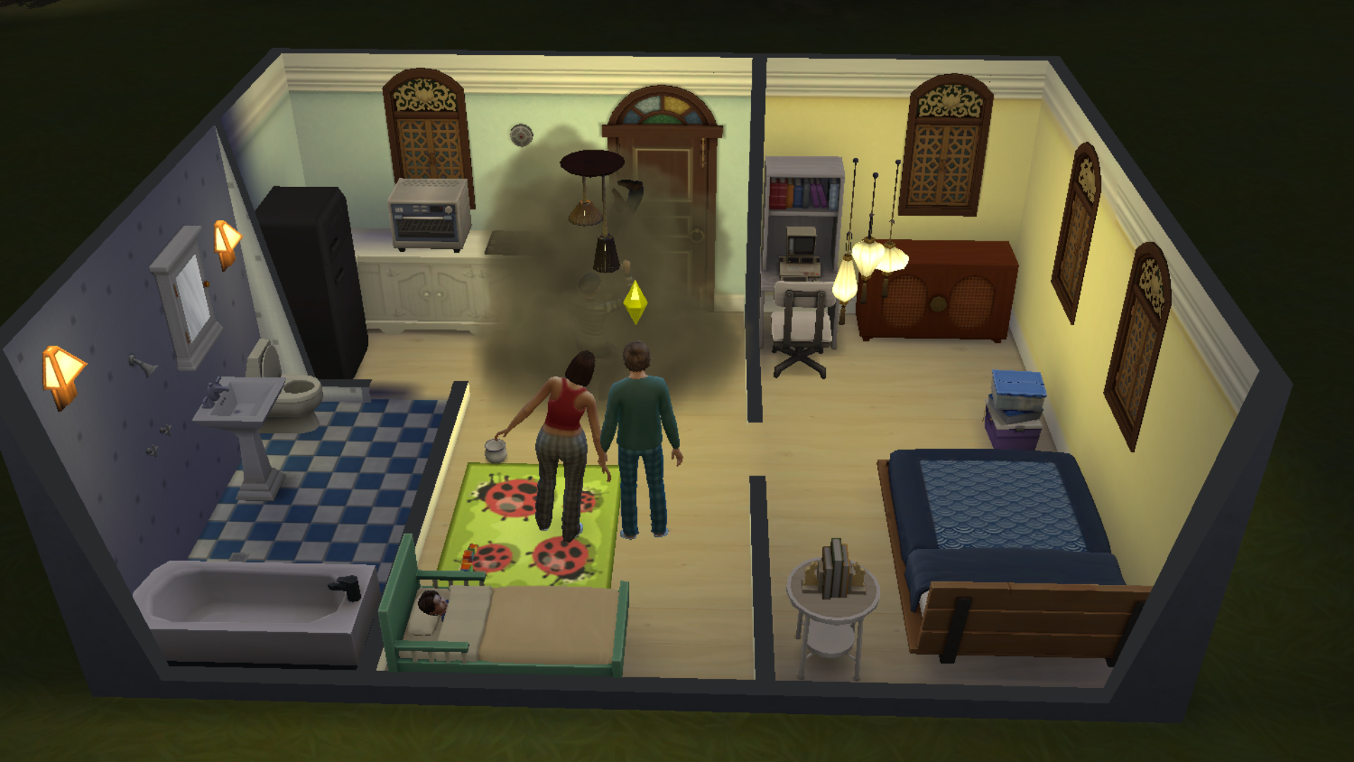 I can use having limited funds as an excuse, but my generation one Sims had the most painfully boring home. Everything was angular and basic with no charm or character. There wasn't even any landscaping around the house!